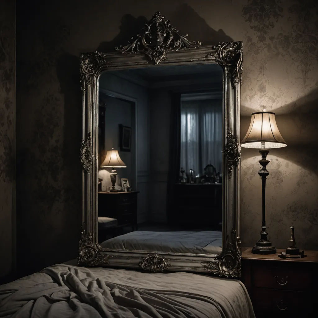 In an old Victorian house on the outskirts of a small town, there was a mirror that had been passed down through generations. This mirror was no ordinary piece; it was said to be haunted. Legend had it that the mirror could capture souls and trap them within its glassy depths.